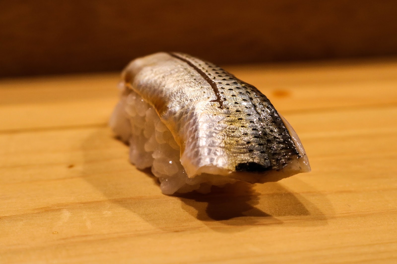 Go ahead and get another sake, you've come all this way. Next up on we've got Shishamo. Shishamo is a mispronunciation of an Ainu word, susamo, which means Willow Leaf Fish. The Ainu are the indigenous people of the islands of Hokkaido, and these people know their fish. These little guys are grilled whole and with their roe intact. SO it's grilled fish and caviar all in one! This means only the females are eaten which makes this a bit of a delicacy. The males however, are unceremoniously left to dry and served as beer snacks way up north. You eat the whole thing, head, fins, all of it. It's delicious and goes great with a bit of sake. Not feeling up to it? Order more sake til you do, I promise you won't regret it.Get to the sushi!